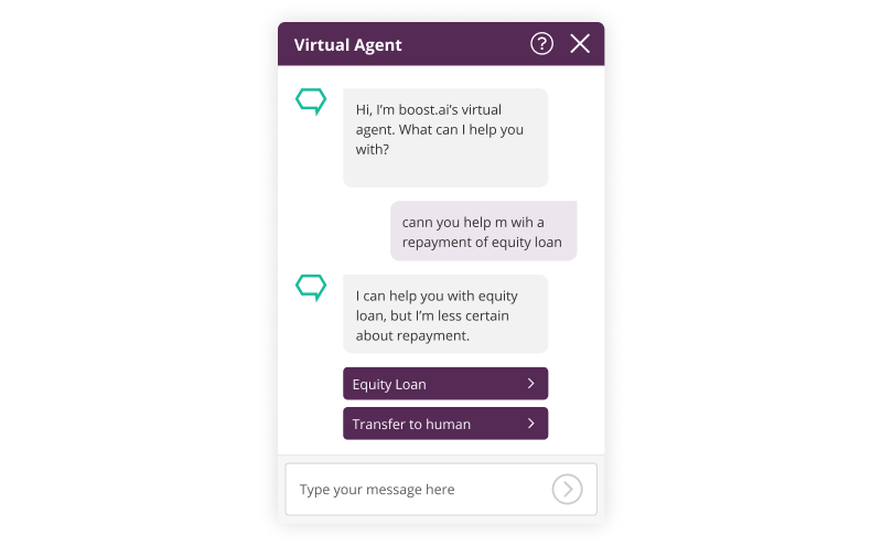 In this example, the AI understands that the customer requires assistance for an equity loan and provides a relevant link. At the same time, it understands that the user wants help with an unknown entity (repayment) and, while it is unable to assist, it correctly identifies it.