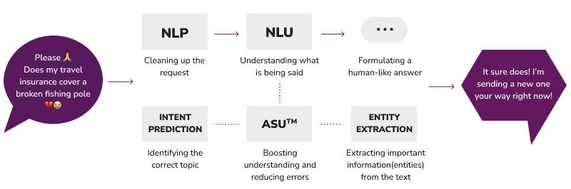 Proprietary algorithms also play an important role in enhancing the overall NLU capabilities of a chatbot. In the case of boost.ai’s conversational AI platform, we have developed Automatic Semantic Understanding (ASU), an algorithm that works alongside Deep Learning models as a safety net to further reduce conversational AI’s chance of misunderstanding user intent.